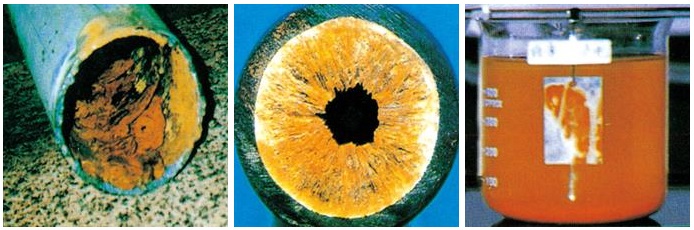 中央空調循環水系統的日常水質穩定處理是相當重要的,不僅可延長管線和設備的使用壽命,即水處理的效果是使管線和設備達到設計的使用壽命;而且能節約大量的電能及水資源;還可防止中央空調水系統結垢、腐蝕,菌藻附著,保證系統設備經濟而安全運行。當然還能改善風機盤管系統運行狀況,創造穩定的舒適工作和生活環境。 不作任何水處理下的管網和浸片情況