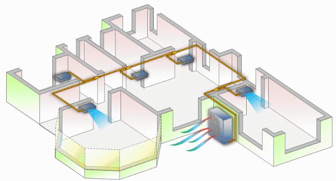 1、滋生細菌,傳染疾病:由于風道通過出風口、回風口與室內形成相對封閉空間,風道內的灰塵(一般肉眼看不見)及病菌會隨著空調風吹到房間各個角落,逐漸變成室內空氣的污染源;同時某一個房間的病菌也容易隨著空調循環風吹到其它房間形成交叉感染。如“非典”期間國家衛生部就曾命令停開室內所有無新風的中央空調,防止疫情傳播。